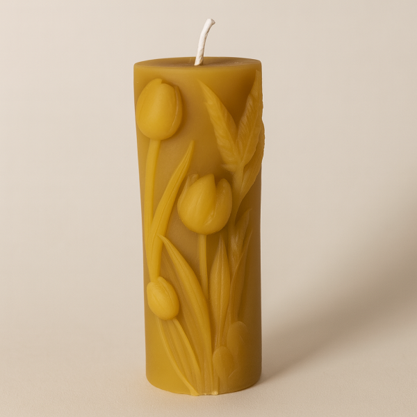 Bienenwachskerze mit Tulpenrelief – Natürliches Frühlingslicht